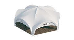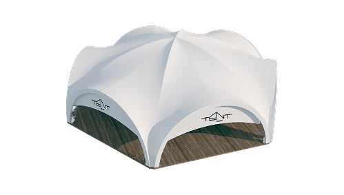 The tent is made of premium materials with multi-level protection: reinforced frame with triple anti-corrosion coating, fire-resistant PVC membrane with UV protection (standards M1/M2, B1). The hexagonal shape not only increases the usable space, but also provides optimal air circulation and natural light. Professional installation on 10 support bases with a load capacity of 500 kg each ensures absolute stability even on challenging surfaces. Installation is carried out on a prepared foundation or concrete base.